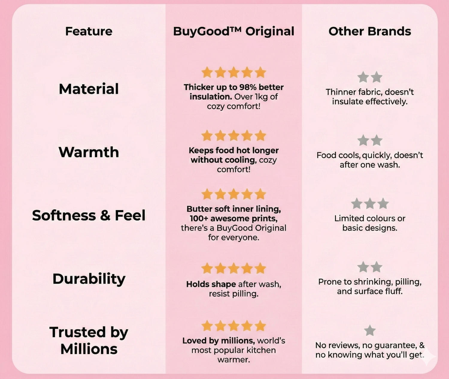 “Better materials, long-lasting comfort and proven trust — BuyGood™ brings the quality you deserve every single day.” 🌟